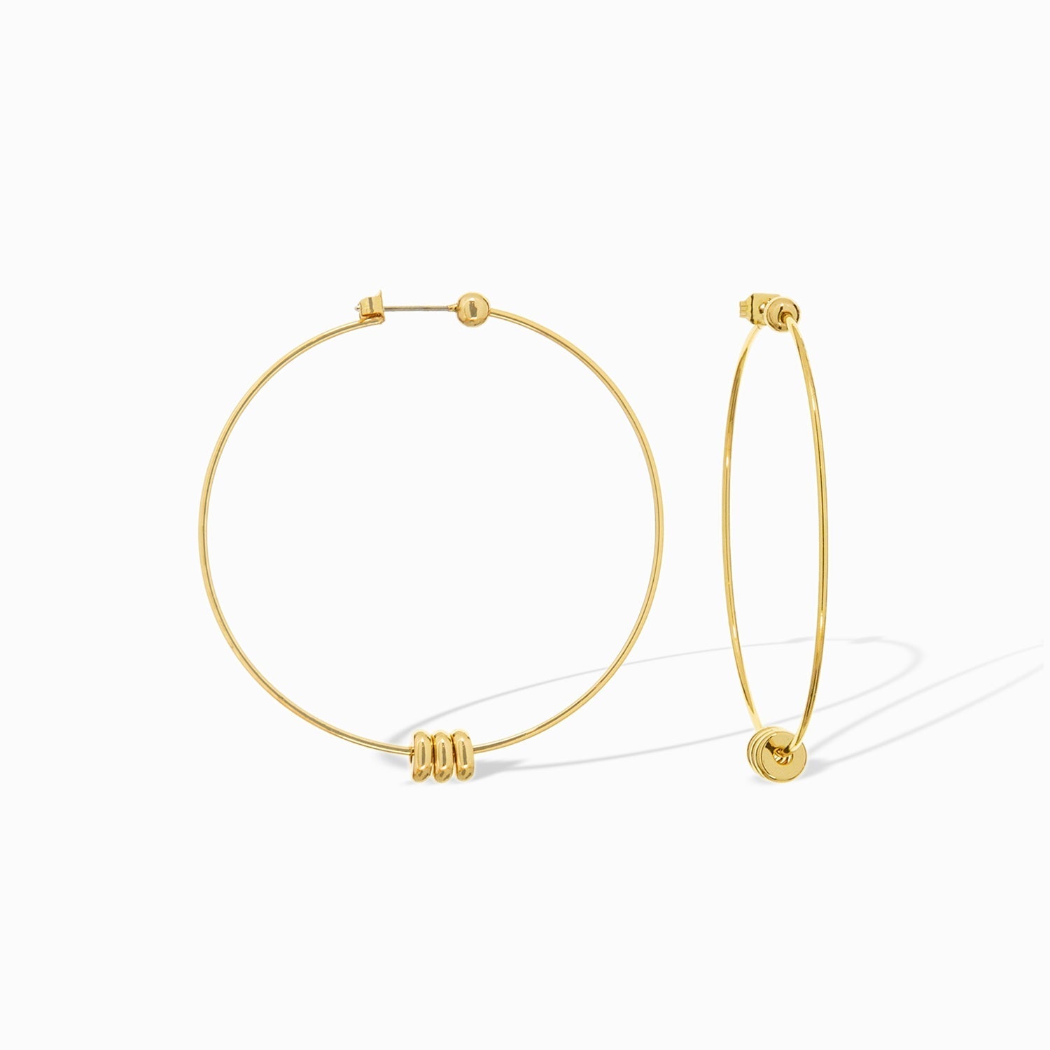 Stylists Favorite! Our thin hoop with free floating rondelle bead is a must have for your collection! Get the look of an infinity hoop with the ease of a push back closure.
